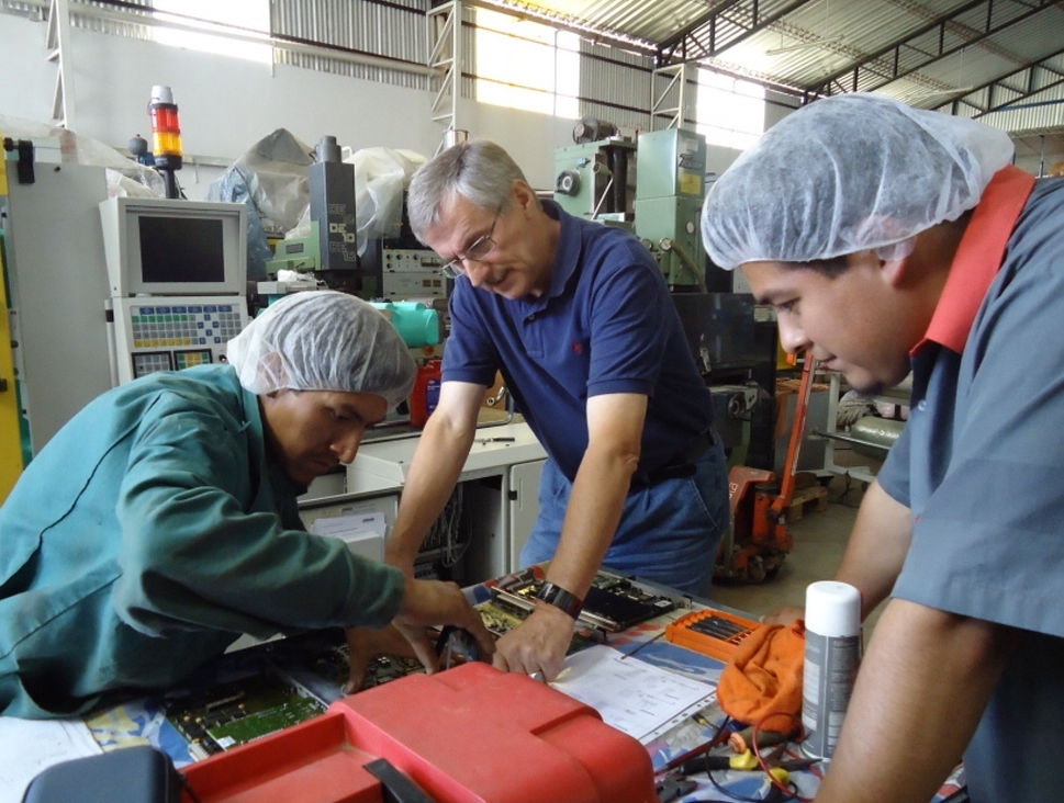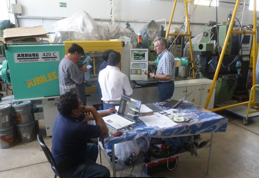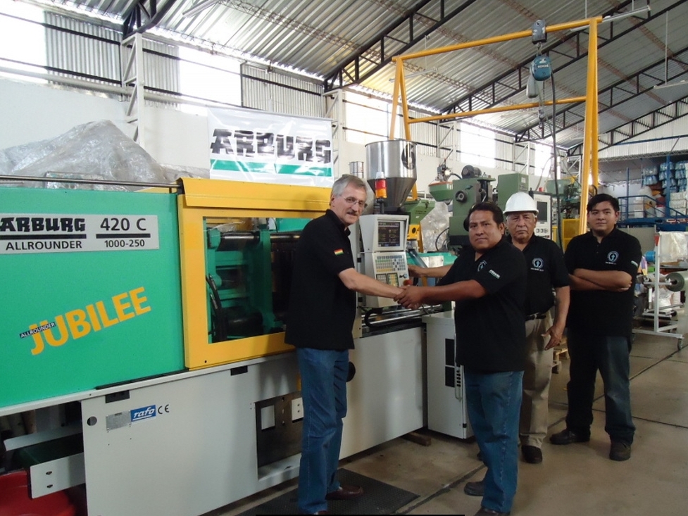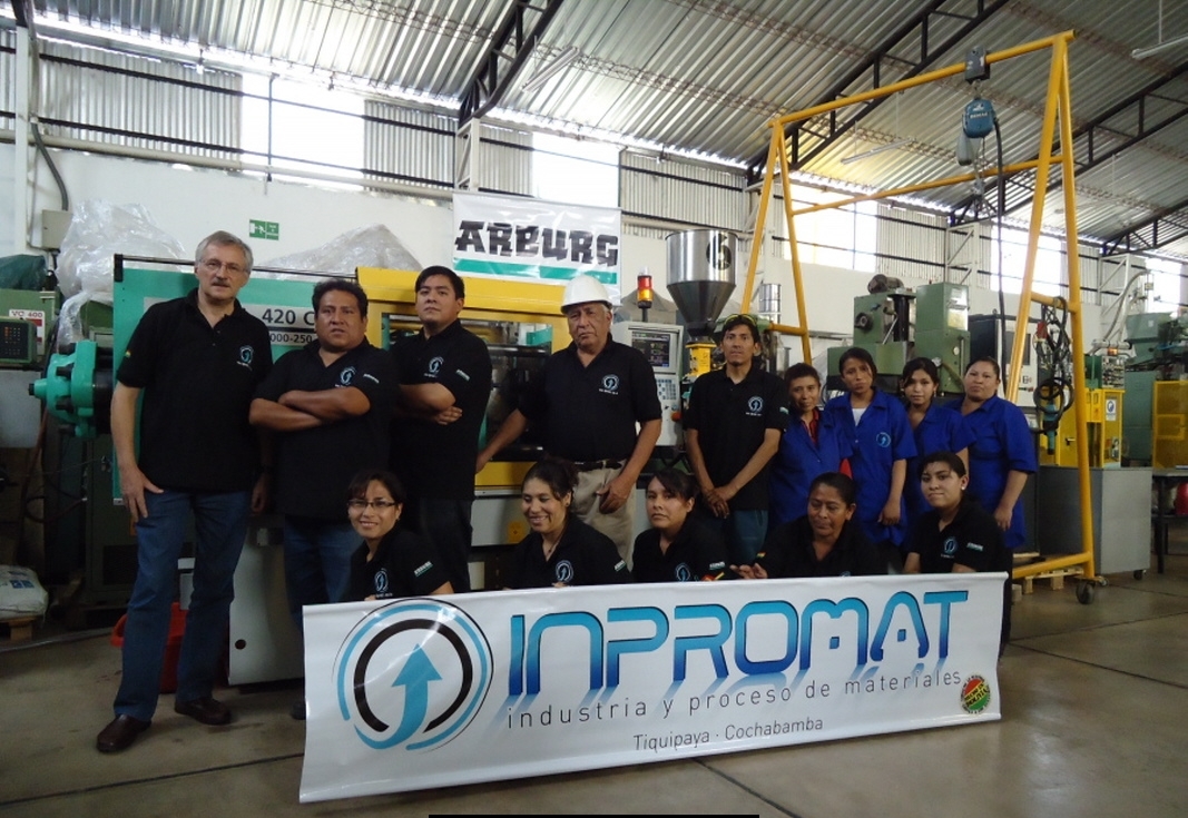 Die Inpromat-Mannschaft vor den Arburg-Maschinen